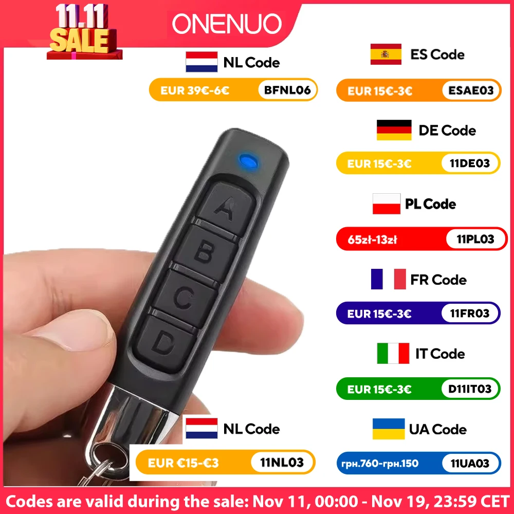 With this remote control, you can control all 433MHz fixed code key fobs.