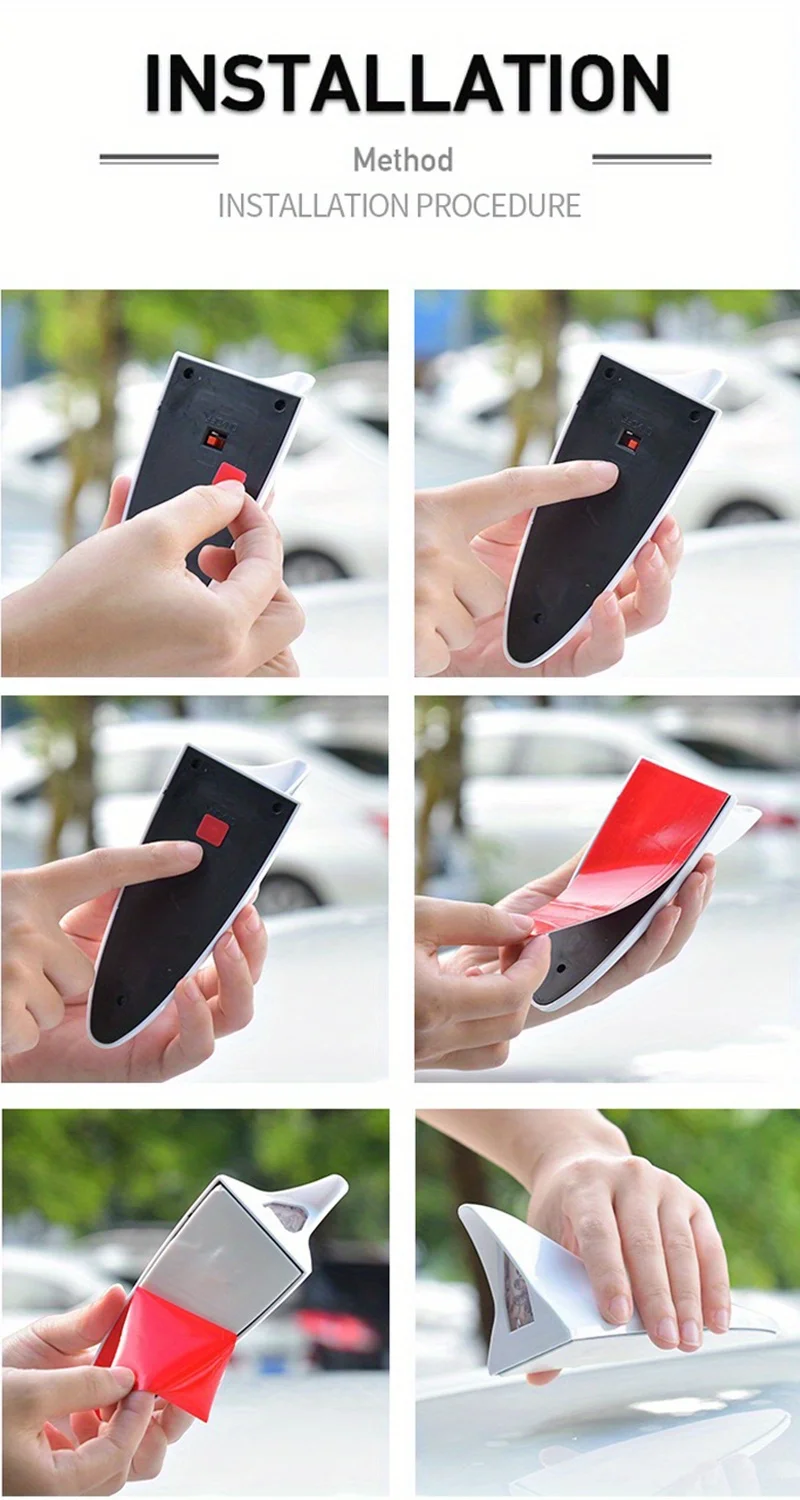 Universal Car Shark Fin Antenna Roof Tail Modification Light with Solar LED Light Car Antenna Driving Safety Warning Light
